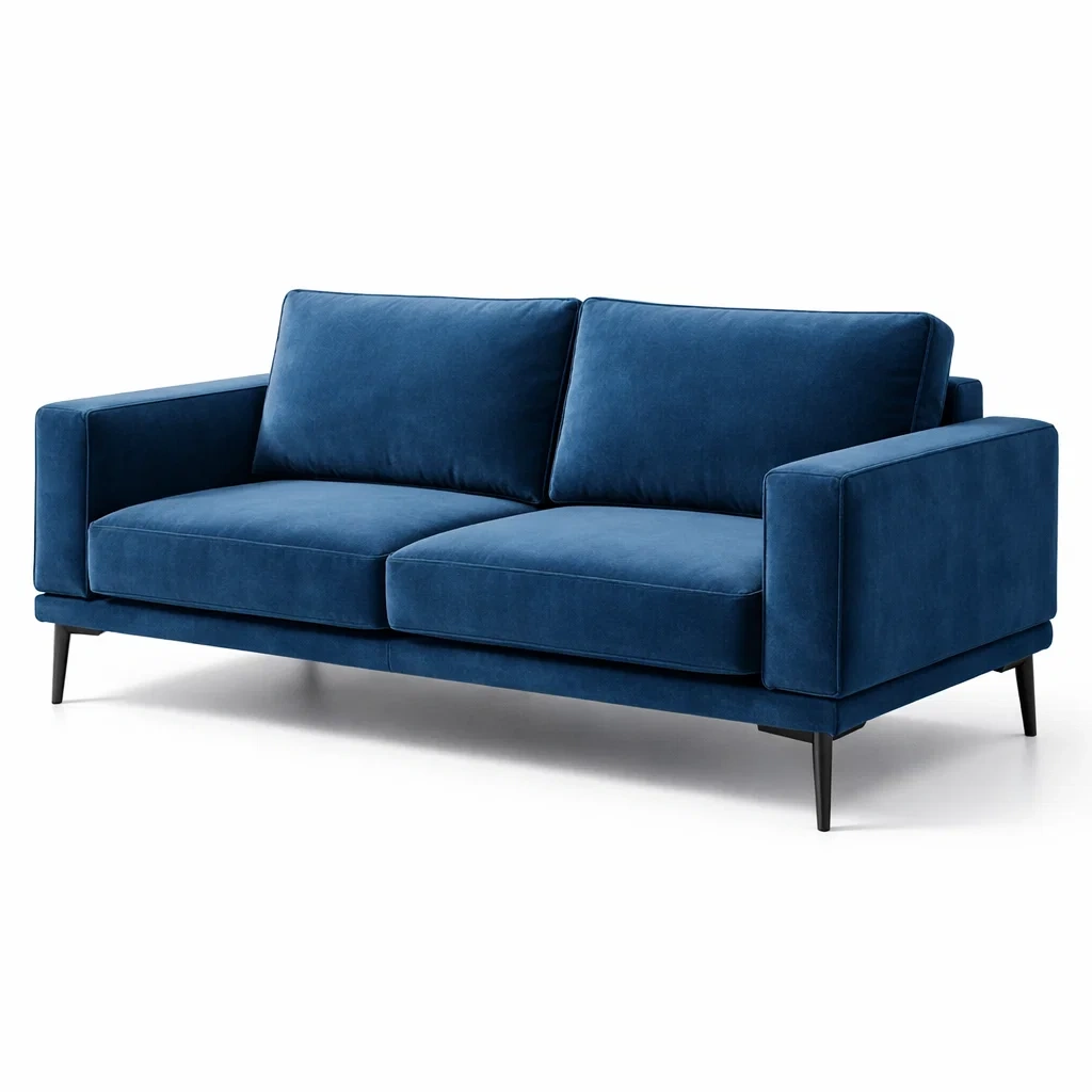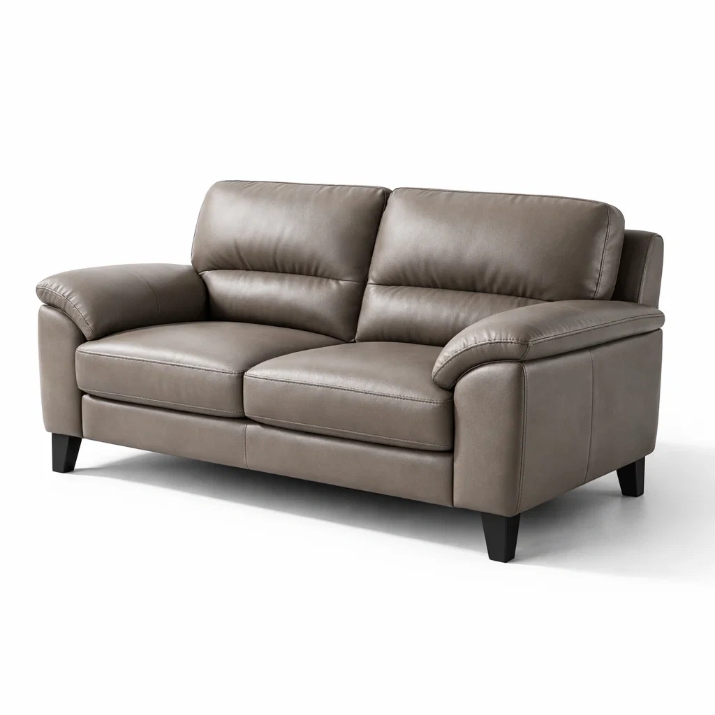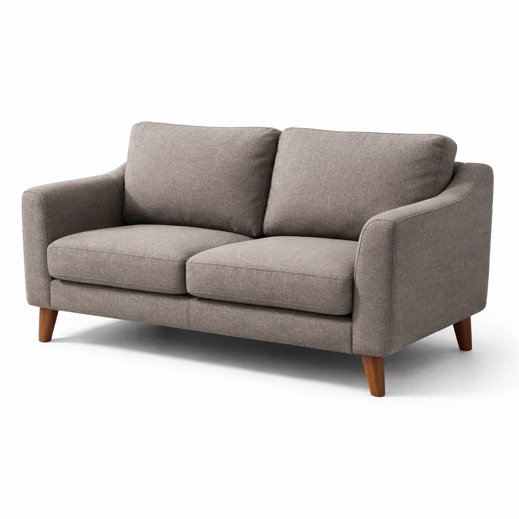 Canapé deux places en tissu polyester gris avec pieds en bois de hêtre